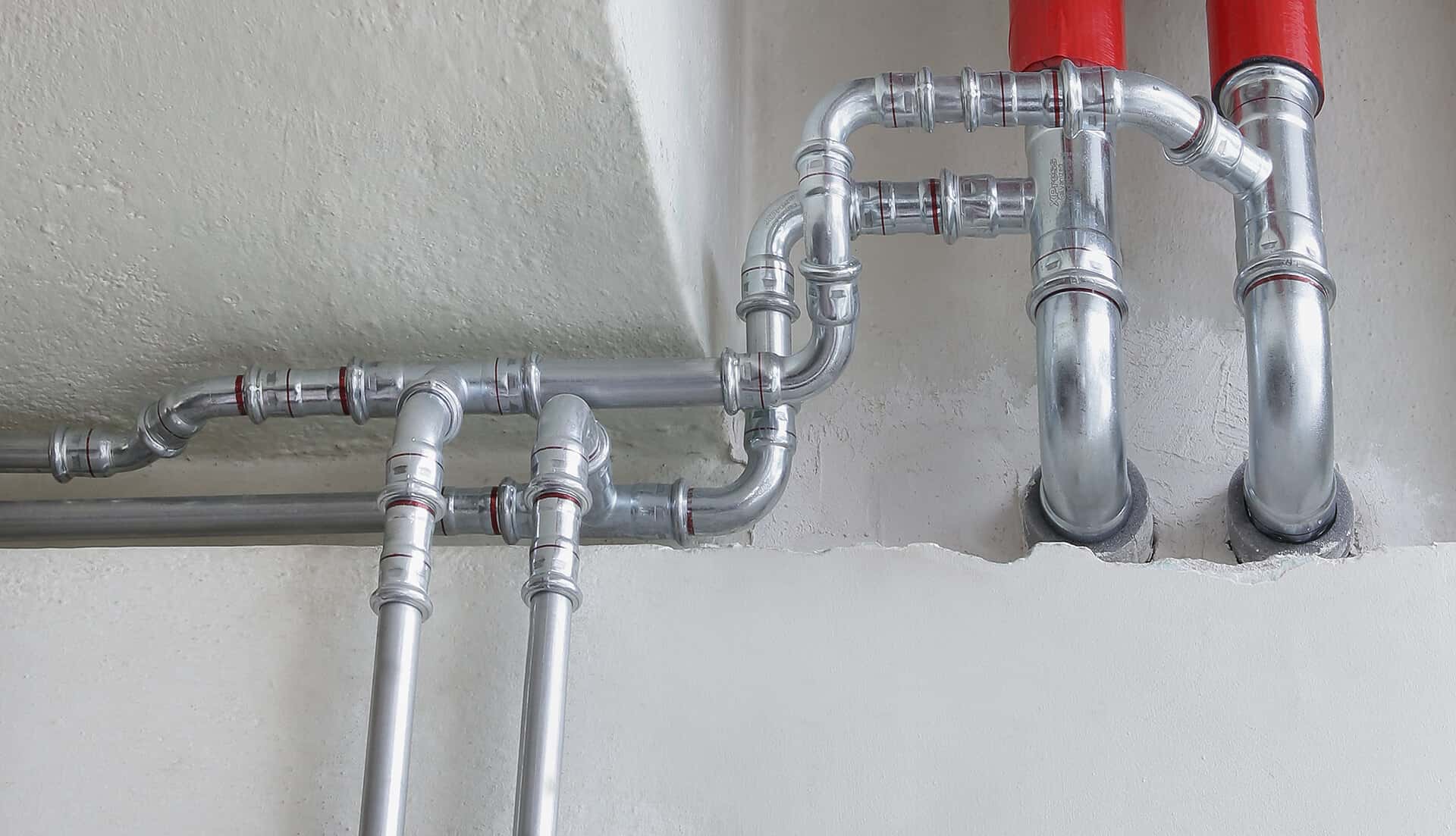 Low thermal elongation coefficient of the pipes and the aesthetic look of the finished system elements (zinc-plated pipes and fittings) make them ideal for on-plaster heating installations, e.g. when renovating old, historic buildings which do not offer the possibility of placing the installation in structural partitions (pipes laid only on plaster).