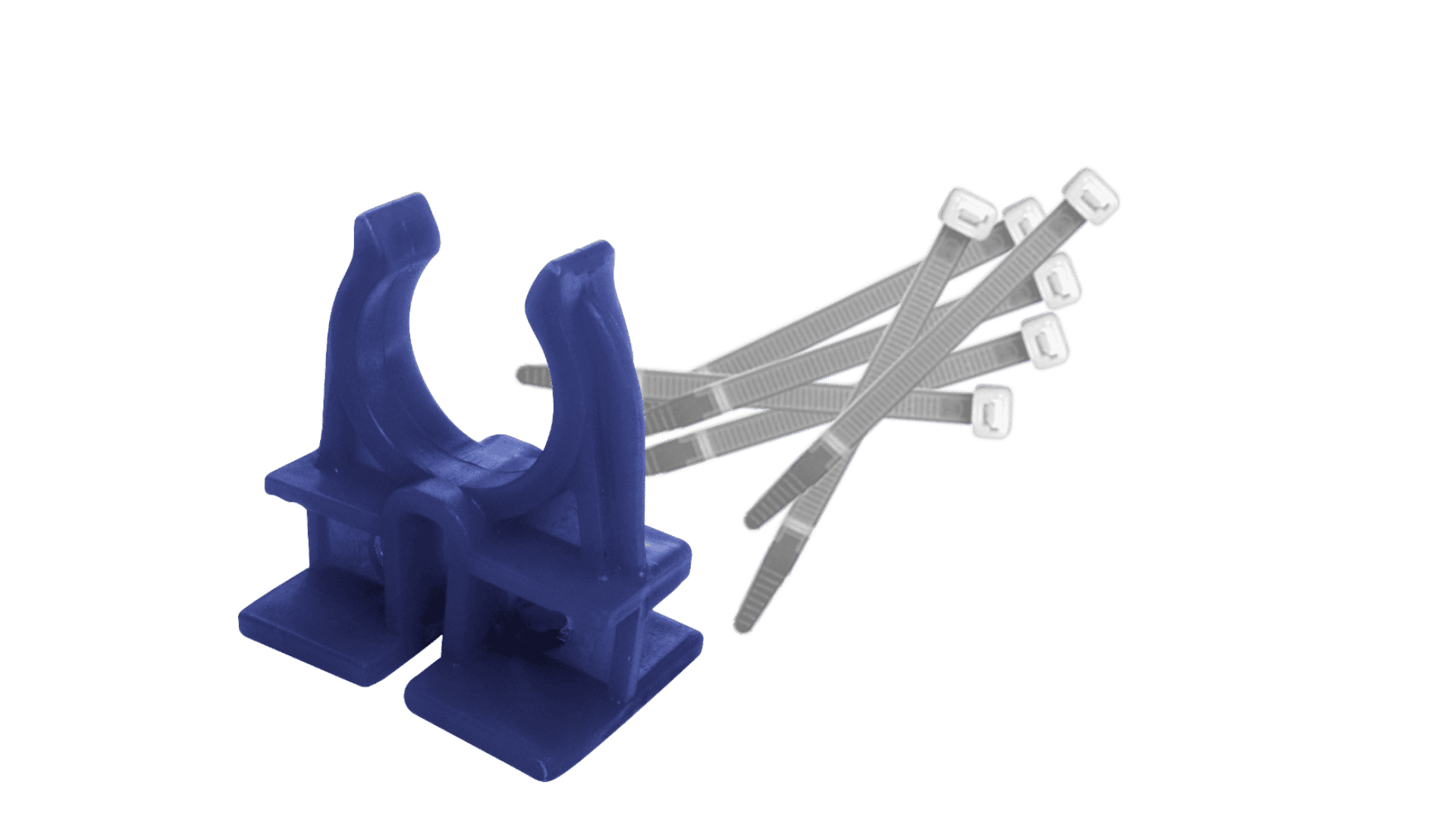 Prefabricated plastic clamps and bands are used to fasten heating pipes on the net.