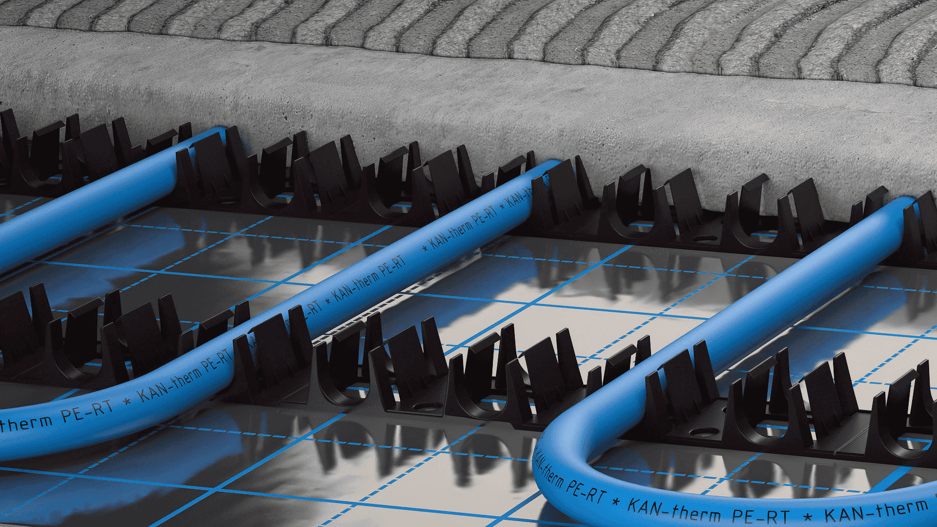 The basic element of the surface installation construction made in System KAN-therm Rail are plastic strips fastening the heating pipes.