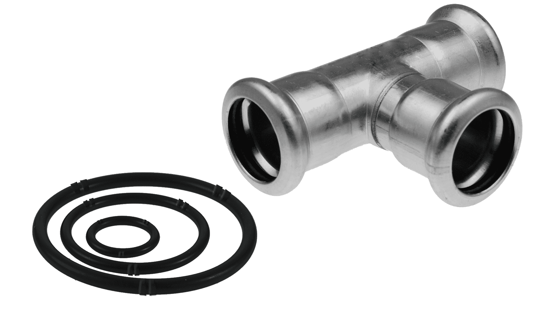 Tightness of pipe and fitting joints in System KAN‑therm Inox XPress Sprinkler is guaranteed by high quality O-rings made of temperature-resistant ethylene-propylene rubber (EPDM) and the application of the three-way "M" crimping profile.