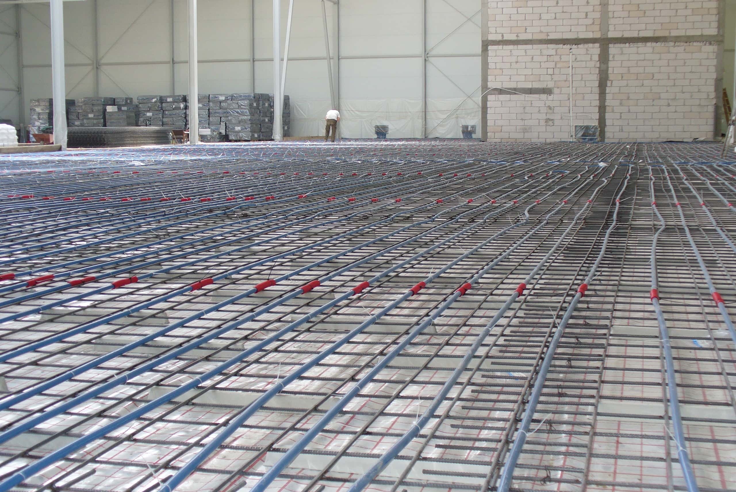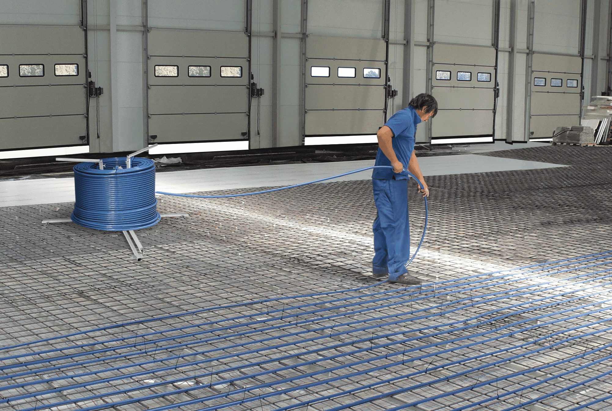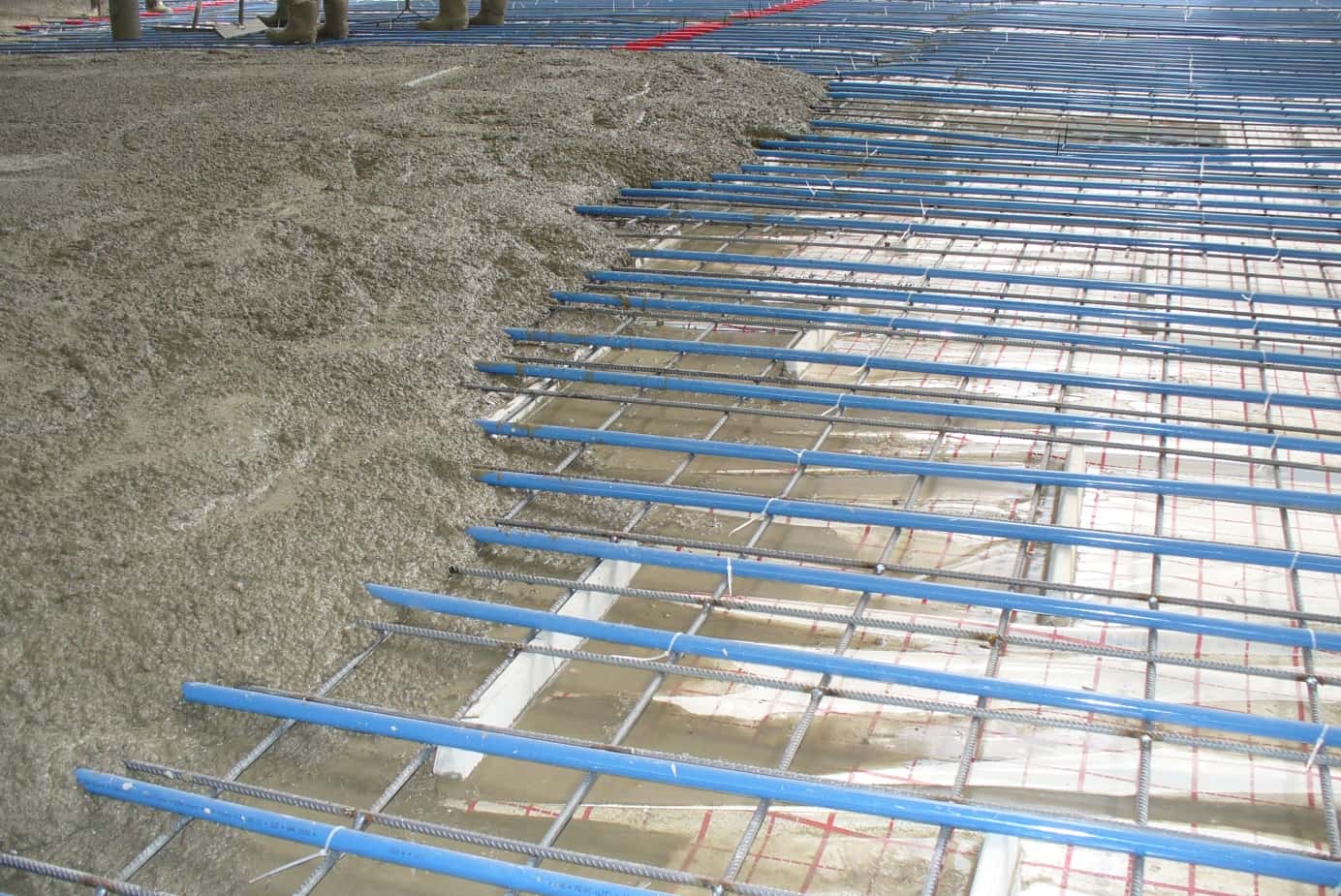 Fasten heating pipes on the laid-out net using plastic clamps and bands.
