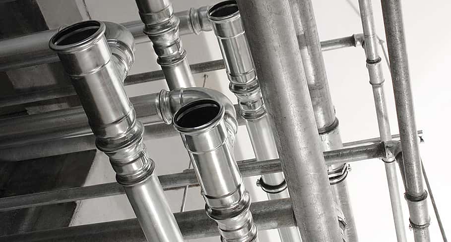 The pipes in System KAN-therm Steel are made of RSt 34-2 carbon steel, material number 1.0034 according to DIN EN 10305-3.