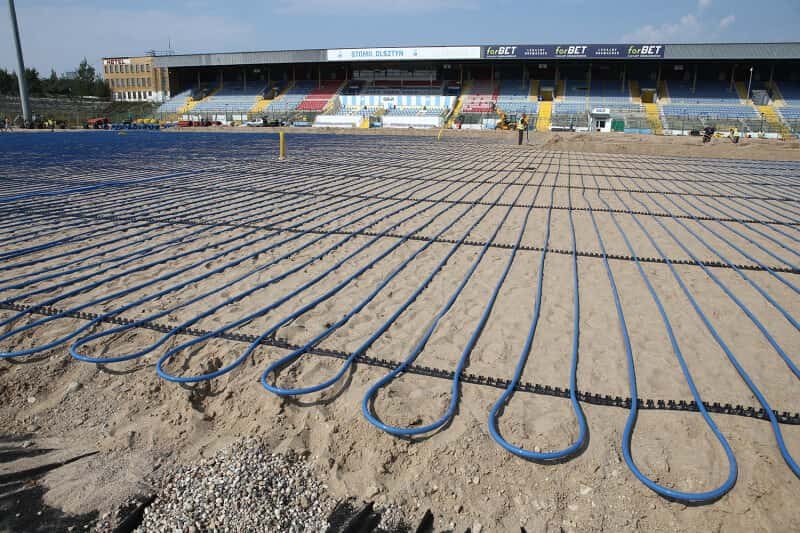 System KAN‑therm Football is particularly dedicated for heating or cooling large outdoor surfaces, e.g. for heating football pitches. Some elements of the system can also be used to build extensive indoor heating systems.