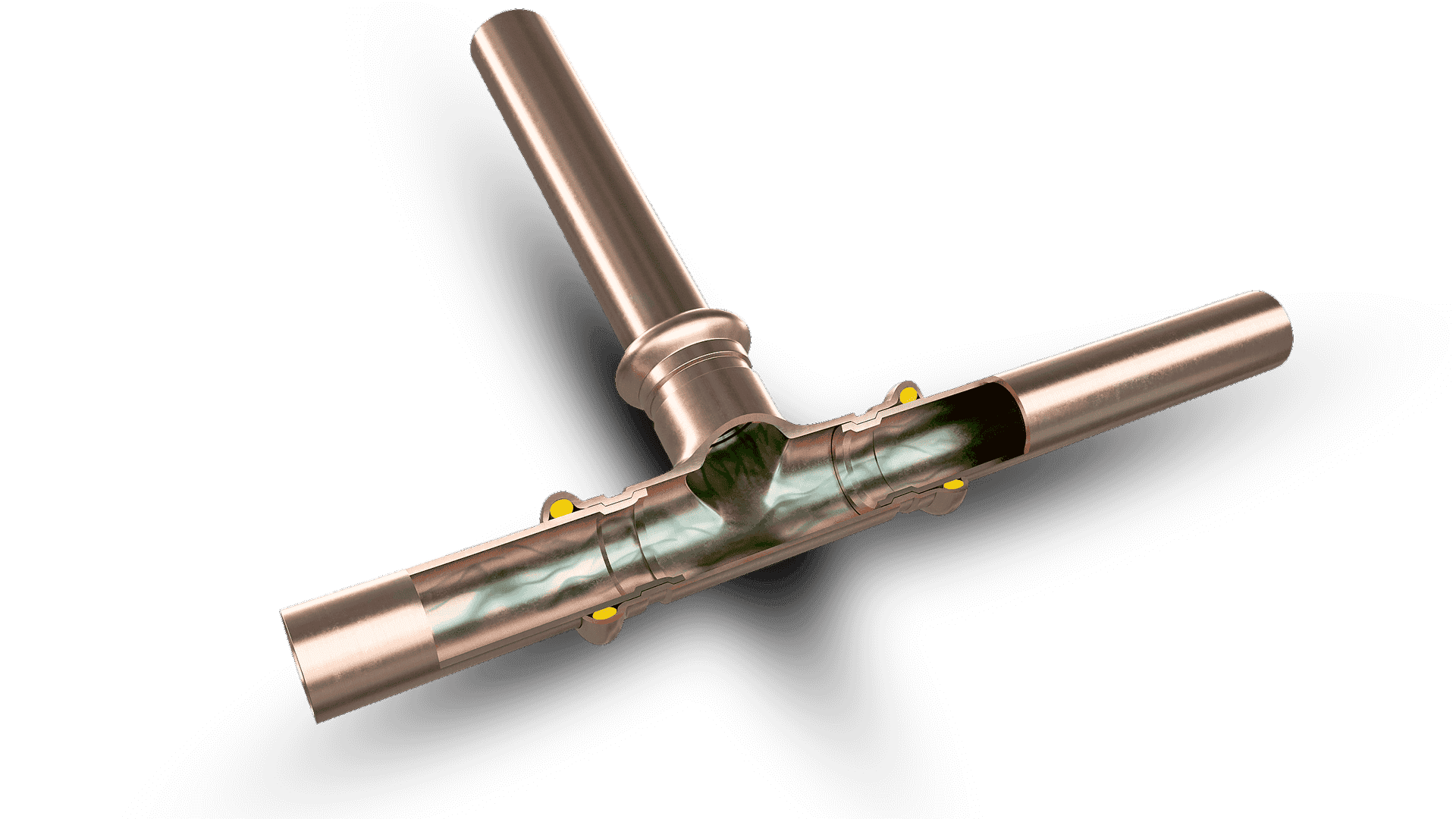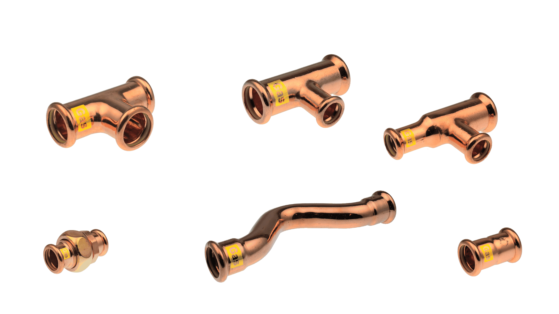 An installation system consisting of connectors made of high-quality CU-DHP copper and 2.109 bronze in diameters from Ø15 to Ø54mm.