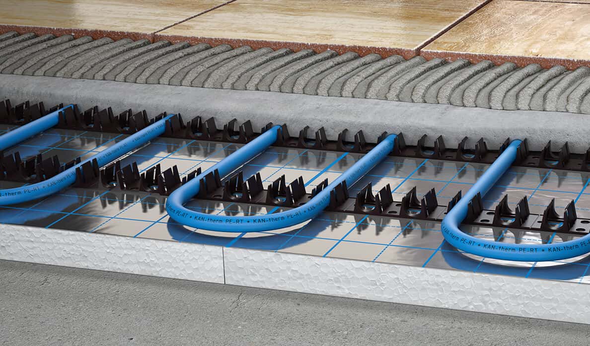 SYSTEM KAN-therm Rail is used for the installation of underfloor heating and cooling systems made with the wet and dry method using the so-called air gap.