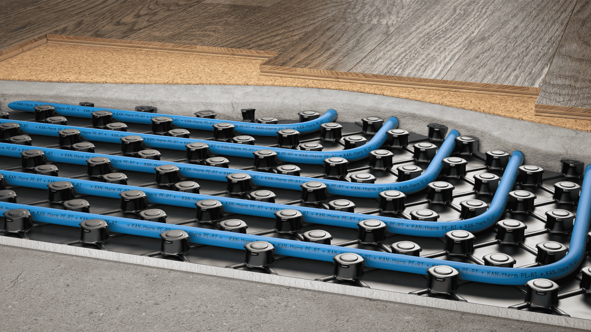 System KAN-therm Profil is used for the installation of underfloor heating and cooling systems made with the wet method. It makes it possible to use foamed polystyrene boards of different thickness which are factory-fitted with a heating pipe fastening system.