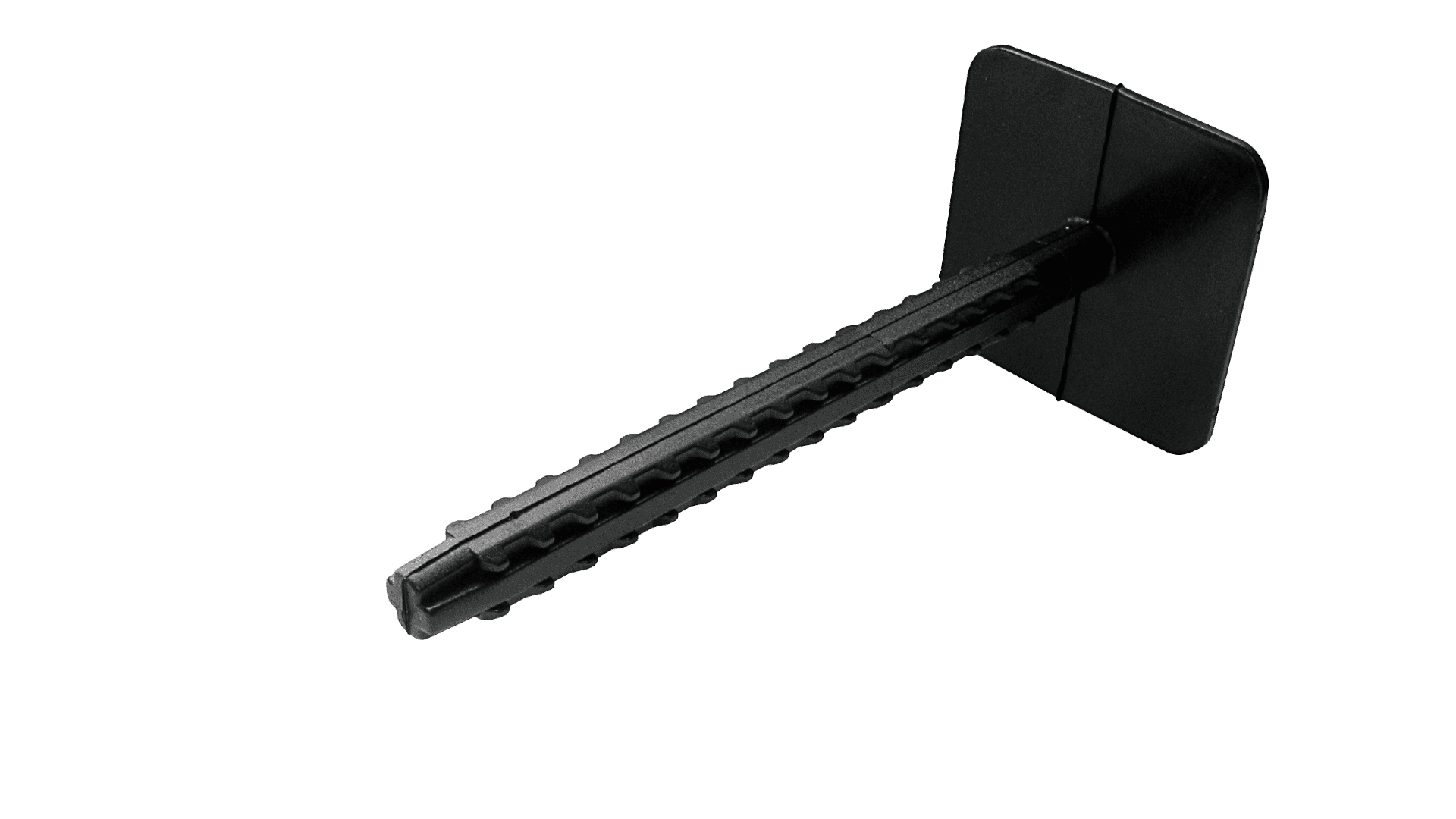 Plastic pegs with large heads act as elements fastening the foil to the surface.