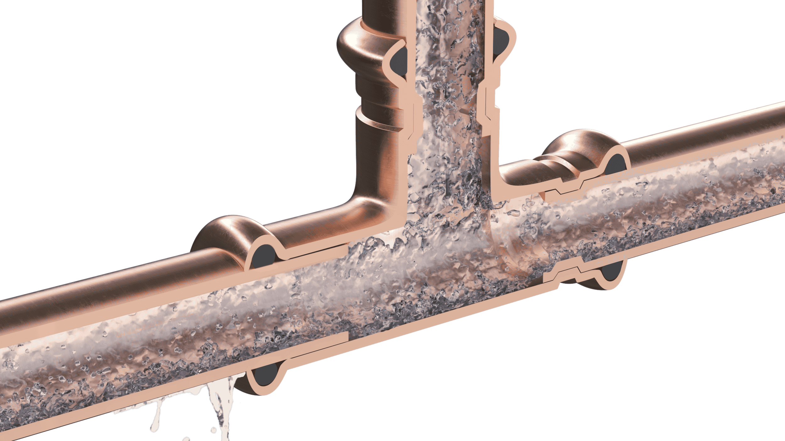 Connecting system elements in the "Press" technology makes it possible to obtain joints with minimum pipe cross-section narrowing, which considerably reduces pressure loss in the entire installation and produces excellent hydraulic conditions.