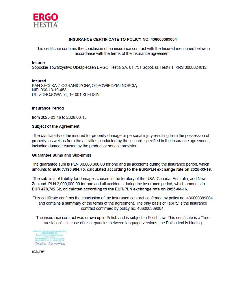 Thanks to the above actions, KAN has achieved recognition by its customers and is perceived as a reliable and trustworthy partner.